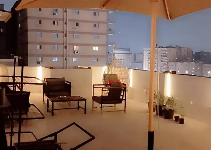 Located approximately a 10-minute drive from the International Park, روف الباشا Roof Al Pasha Cairo villa offers a terrace with views of the garden.